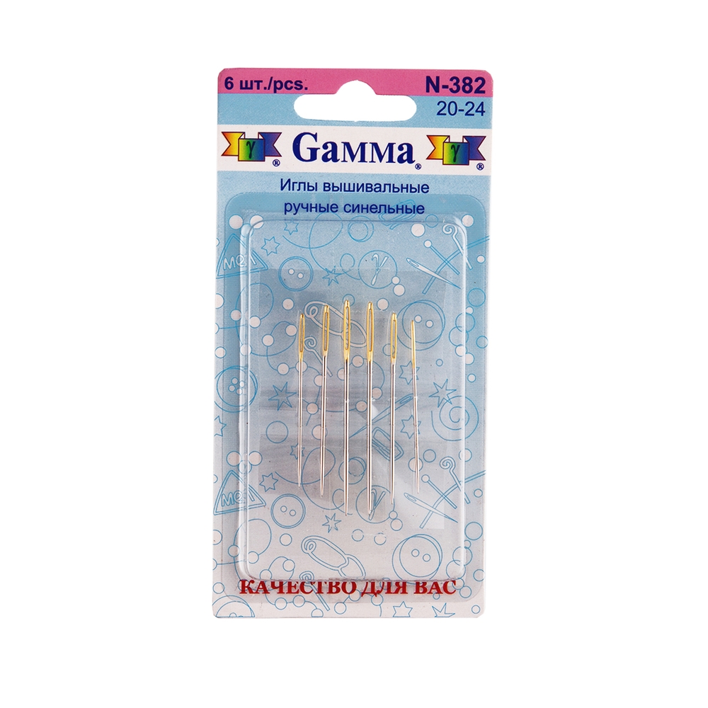 Gamma N-382 Иглы для шитья ручные №20-24 6 шт. в блистере синельные