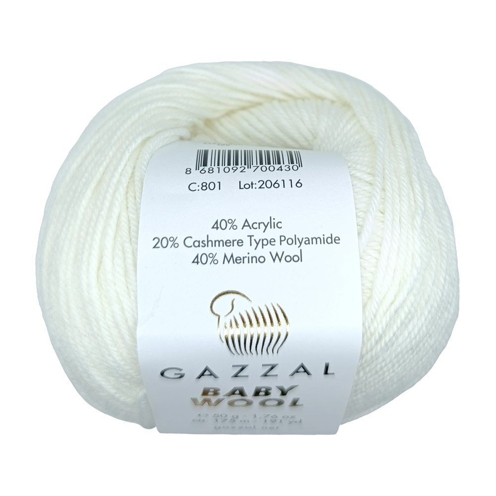 Пряжа с мериносовой шерстью и искусственным кашемиром Baby Wool Gazzal предназначена для вязания зимних кардиганов, шалей, шапок, носков, свитеров с косами, варежек. Именно в таком составе пряжа идеально подходит для вязания детских вещей - теплых кофточек, шапочек, пинеток. Нить отличается высокой прочностью, мягкостью и блеском. Пряжа отличается гипоаллергенными и антибактериальными свойствами, хорошо держит тепло.