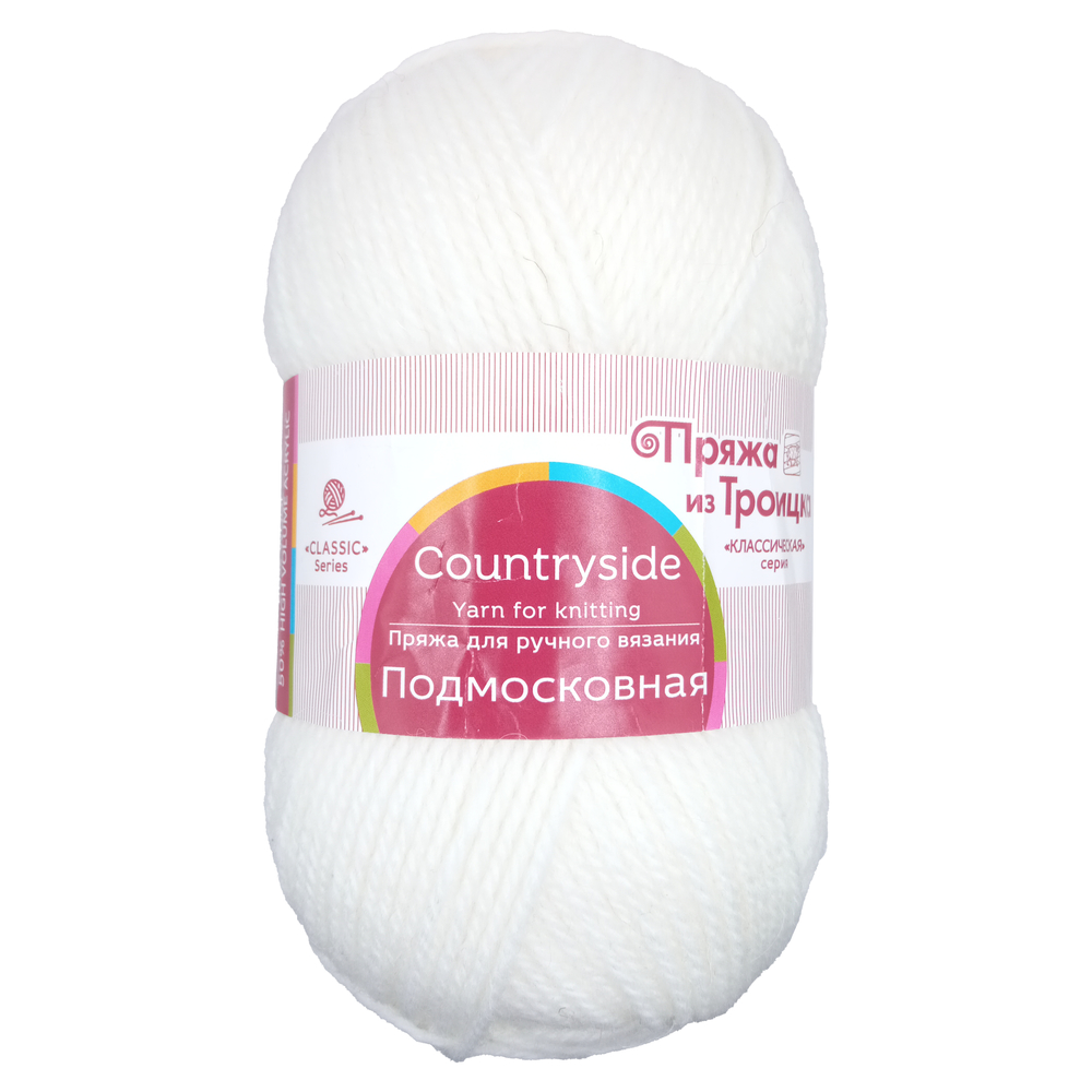Пряжа ТКФ Подмосковная 001 белый (теплый)