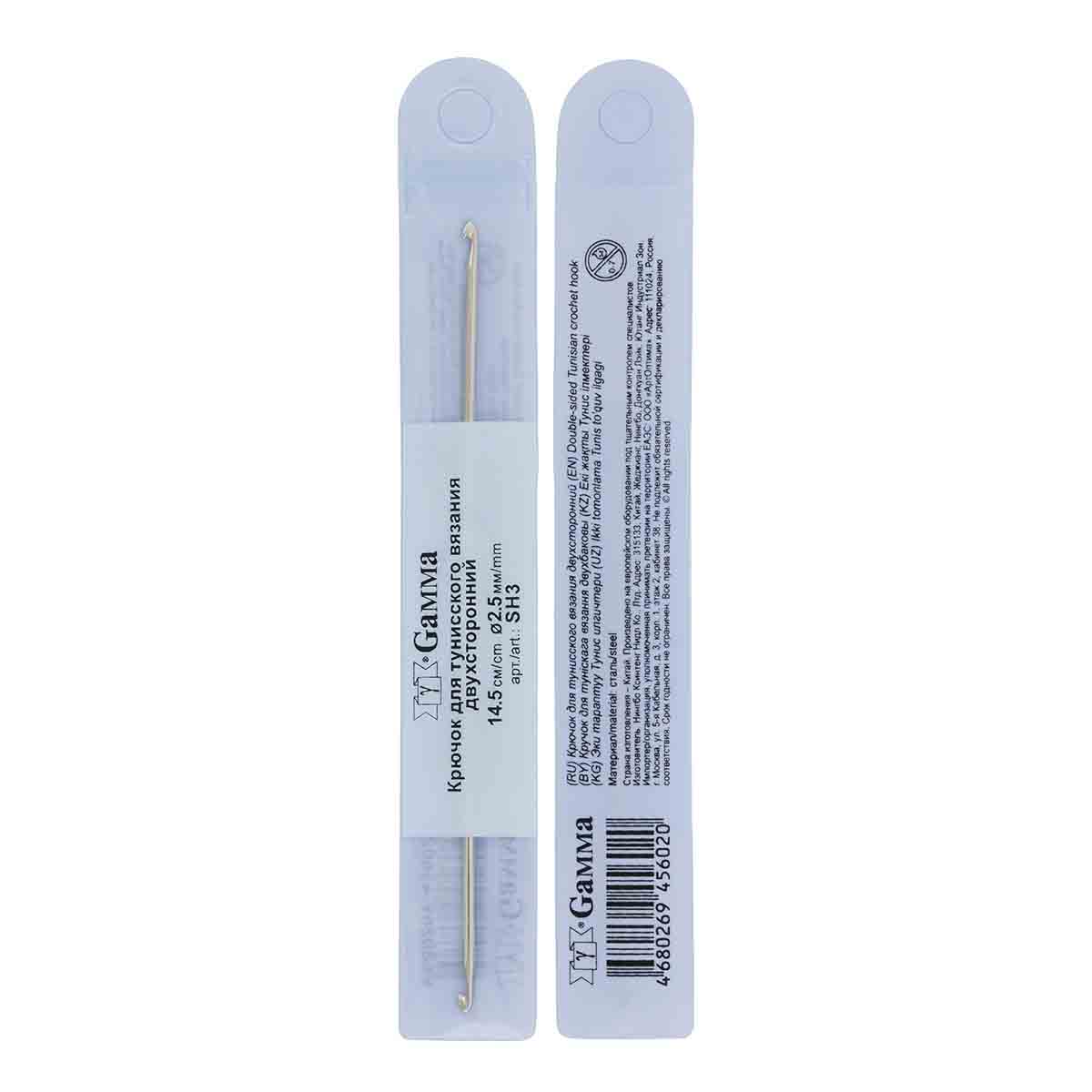 Крючок для вязания двусторонний стальной. Двусторонний крючок подходит для двух техник вязания - обычного и тунисского. Особенно удобно вязать изделия, где следует избегать соединительных швов: рукава, сумки, шапки.